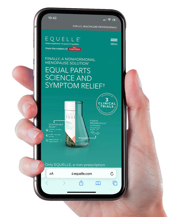 Gynecologists and primary care doctors need real data to believe in EQUELLE, delivered in a fast, digestible way. The HCP website fulfills on this need. By detailing EQUELLE’s molecular structure and how it works, the clinical studies and the symptoms relieved, HCPs feel they finally have a supplement they can feel proud to recommend to their patients. And when they’re ready to take the next step, they can request samples and savings all in one place.