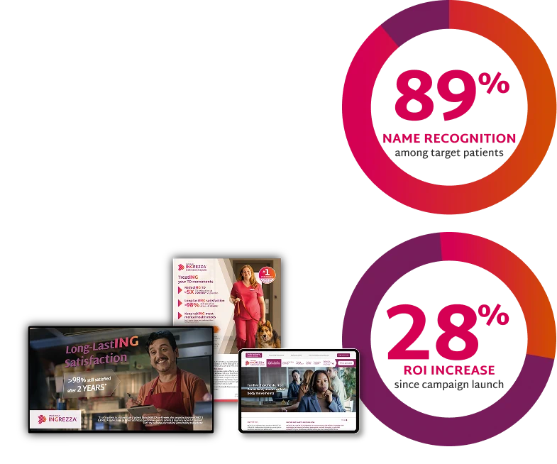 The campaign’s hallmark is the strategic highlighting of “ING” within key messages, aligning with INGREZZA branding.